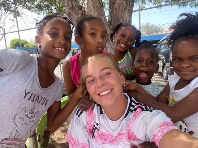 3 mei ben ik begonnen met mijn stage op Curaçao. Ik heb hier gymlessen, voetbaltrainingen en naschoolse activiteiten gegeven. Het was een heel leerzaam proces, zeker ook omdat je opeens helemaal “alleen” alles moet gaan regelen en ondernemen. Wij zaten aan het begin met 14 man in een huis dus je had altijd wel iemand waar je het mee kon vinden wat het super gezellig maakte. We gingen vaak stappen met z’n allen buiten onze stage uren om. We hadden super fijne stage uren en ook de lessen waren erg leuk. Je merkt dat de kinderen hier heel dankbaar zijn voor de lessen die ze krijgen. Ze deden daardoor ook met ieder spelletje heel enthousiast mee. Ik heb enorm genoten van mijn tijd op curaçao en kan niet wachten om weer terug te gaan naar dit geweldige eiland!
