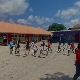 Naast deze stage uren geven wij ook les op een basisschool bij ons dichtbij de accommodatie. Wij mochten hier de naschoolse activiteiten verzorgen, je bent hier heel vrij in om te doen wat jij denkt dat leuk is voor de kinderen. Zo kan je ook iedere les met iets anders komen en hoeft het niet perse op elkaar aan te sluiten. Persoonlijk vind ik dit de leukste uren, omdat je echt merkt dat de kinderen zo blij en dankbaar zijn dat jij er weer bent om met hun aan de slag te gaan met leuke spellen/sporten of activiteiten.