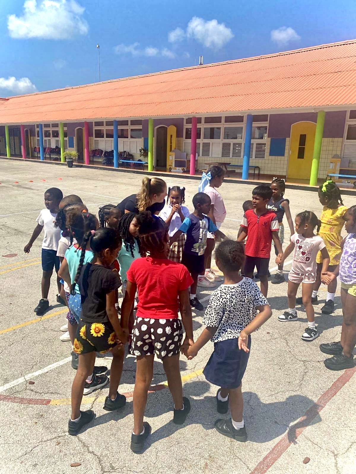 Tijdens mijn stage op Curaçao heb ik veel les gegeven op verschillende mooie locaties. Dit waren bijvoorbeeld sportlessen aan de basisscholen en middelbare scholen in het Ergilio Hato stadion, echt een top locatie met mooie materialen en voorzieningen, super tof om hier les te mogen geven aan de leerlingen!