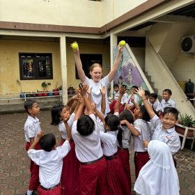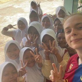 Samen met Puck, Bo, Nynke, Oscar en Jasper begon ik als onderdeel van de ‘pilotgroep’ aan het nieuwe DKVS-project in Semarang, Java! De eerste weken waren een ontdekkingsreis: het Indonesische DKVS-team, het huis, de scholen—alles was nieuw. Onze taak als pilotgroep was het opzetten van het project, wat betekende dat we continu met een kritische blik moesten kijken naar verbeterpunten. Al snel bleek dat dit geen overbodige luxe was; er waren nog veel aspecten die aangescherpt konden worden. Tegelijkertijd werd duidelijk dat dit een ontzettend gaaf project zou worden, dankzij het fantastische en enthousiaste Indonesische team en onze gezamenlijke inzet om er iets moois van te maken.